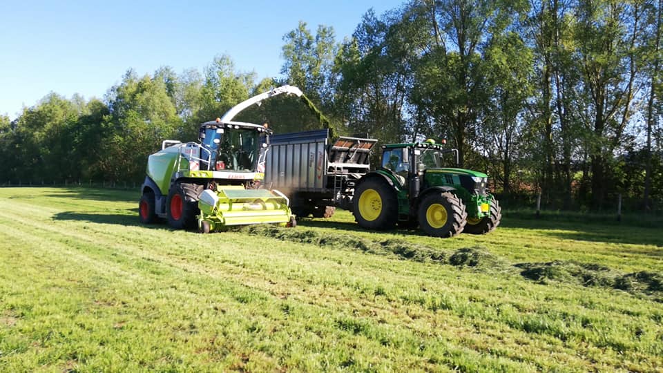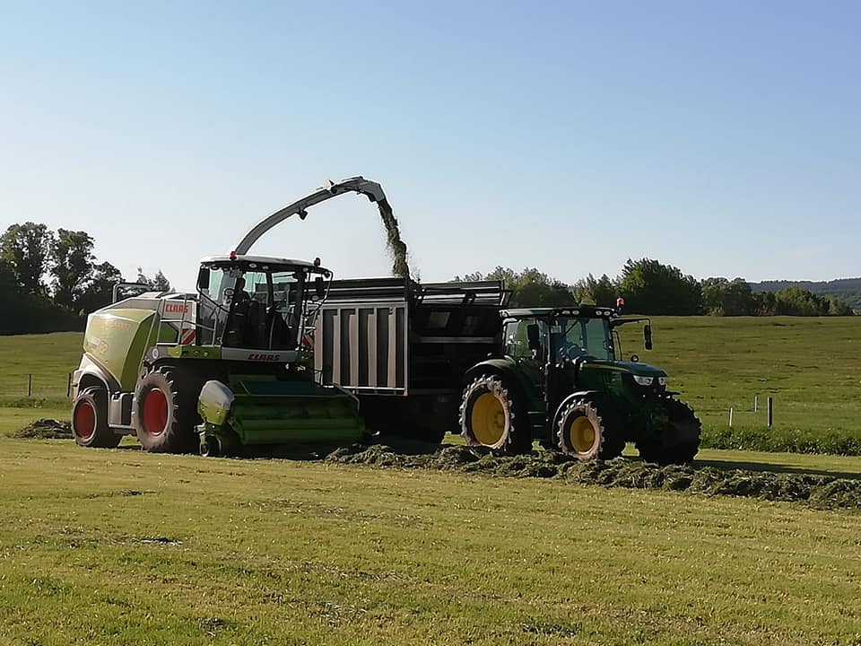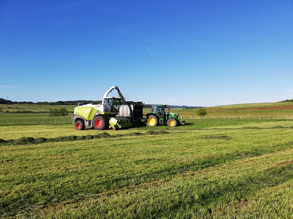 Der 1.Schnitt Grassilage ist "drin".Einen Tag mähen,einen Tag schwaden und einen Tag Gras in einer Schlepper-Kolonne ins Silo "nachhause" fahren.