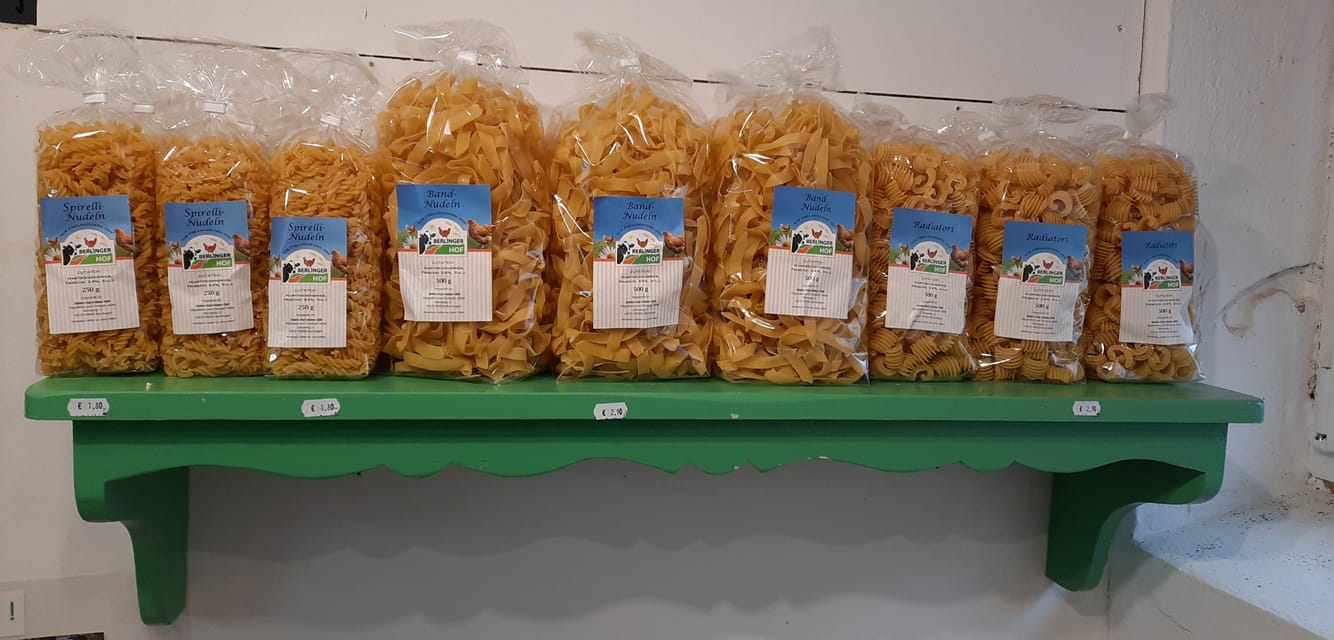 Bandnudeln,Radiatori und Spirelli aus unseren Freiland-Eiern.